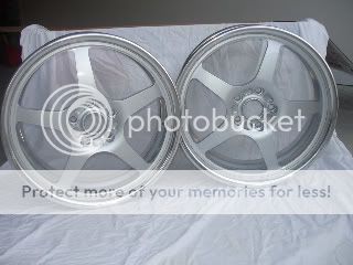 (2) Roja Formula 5 wheels. They are 18x7 , 5 x 114.3(5 x 4.5") Bolt pattern. Silver with polished lip. These are 2 piece forged center wheels. No center caps.