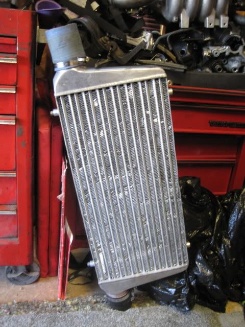 huge fmic 3inch in and outlets. fins are a lil beat up but it doesnt leak.