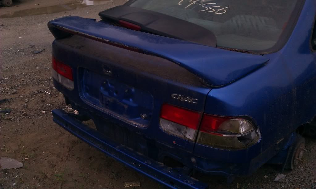 I have an electron blue trunk lid for sale. i thought i was going to need it but mine was fixed thank goodness. the paint on the trunk is lid is good, on the back of the spoiler paint has chipped off but that can be fixed pretty cheap, the rest of the spoiler's paint is good. it does have an LED brake light and the wiring is there for it and i think everything else back there. im going to post up more pics. the arms that hold the trunk up come with it, the "spring" bars that go under the trunk come with it. basically it's everything you need for a civic trunk assembly.