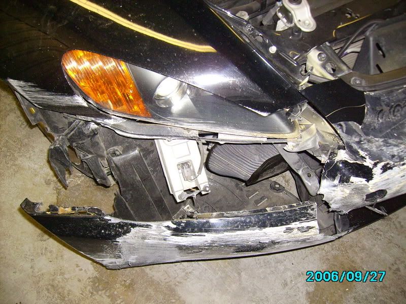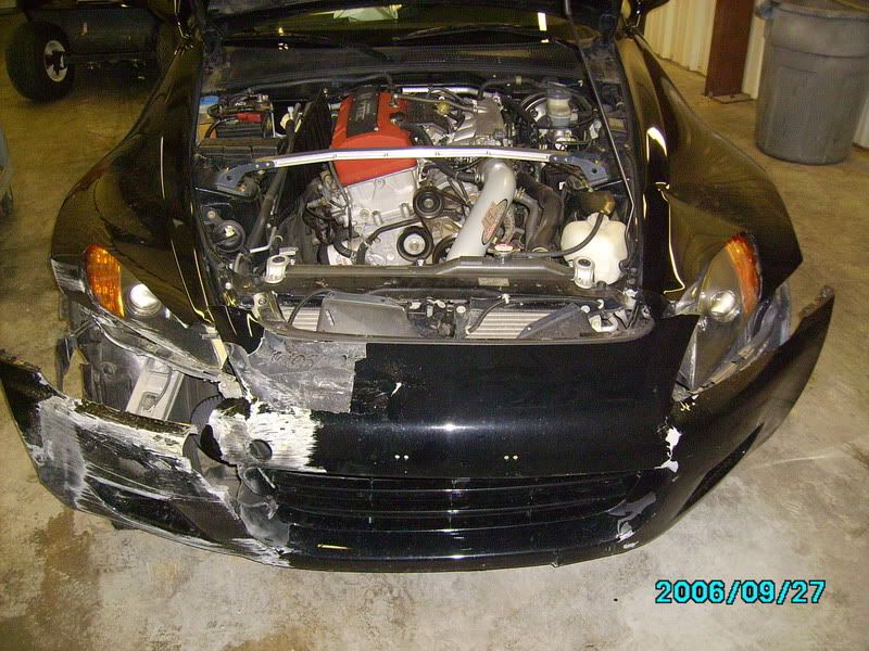 the guy at the body shop asked me if i had wrecked it before because, if you notice the gray area on the top of the front bumper, it has been filled with bondo. i told him i've only had it for a month, but at least i can get it fixed right this time.