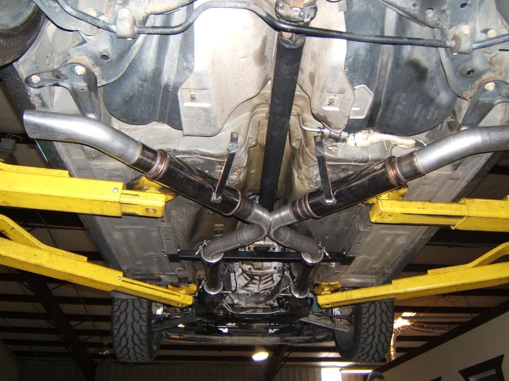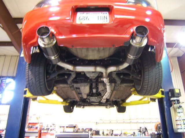 here's the full custom stainless exhaust split into dual HKS Titanium tipped cans