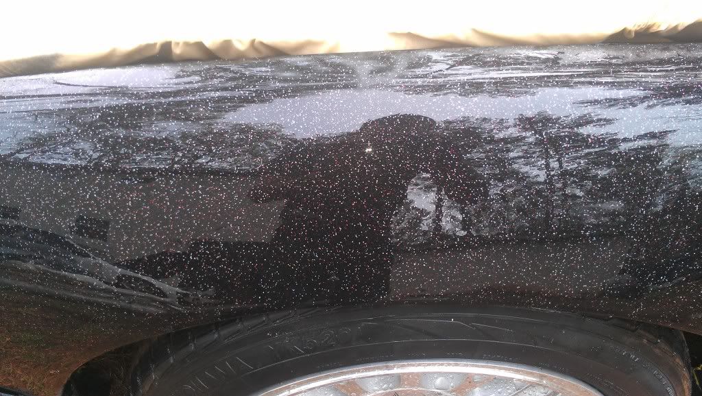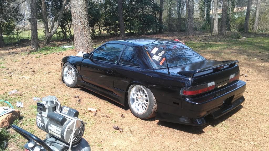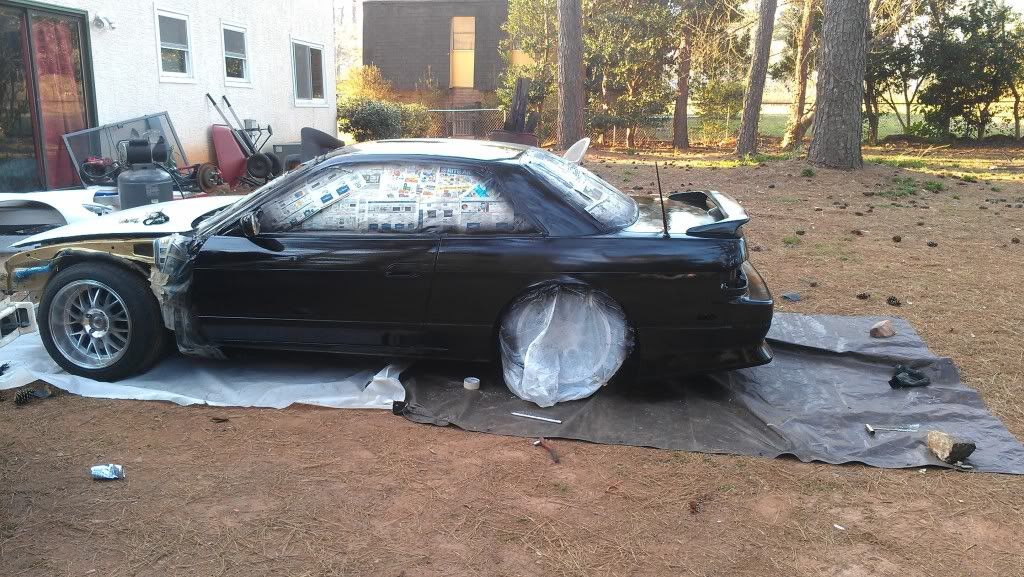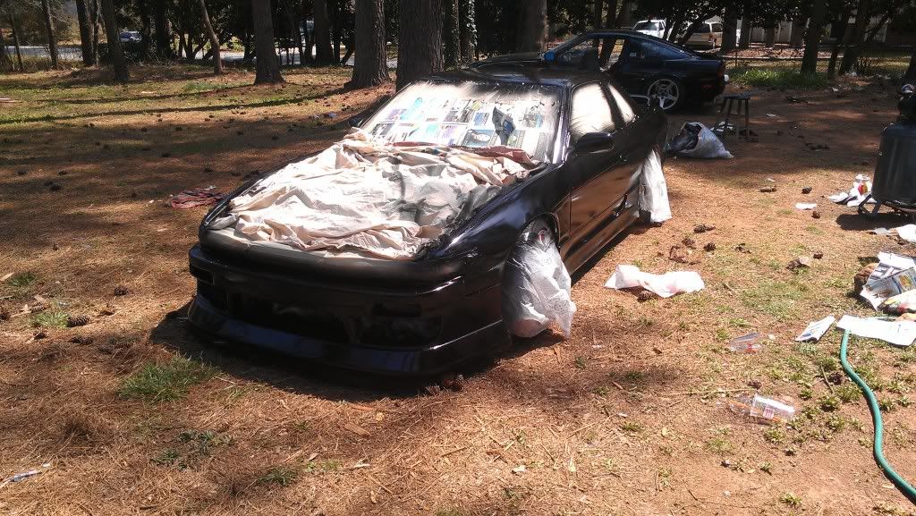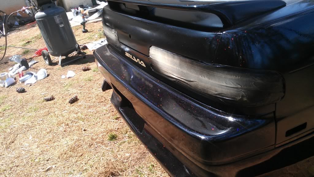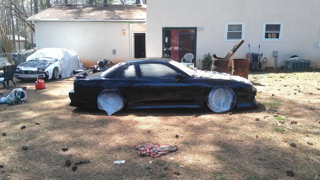 Yeah. I mean in spots its pretty bad and rough but all in all it came out smooth. Only had one or two runs (psi was wrong). After we bumped it up from 20 to 60 it started to look better. Ill save my money up and get a better paint job later, but for now I just wanted it to be all one color. Has a lot of flake in the paint. Its also a stage 1 type paint. Looks better then a rattle can job. Still haved to wet sand the fiber glass fenders and front bump. My trunk is fucked due to some asshole sanding groves into it so its either sand it to bare metal or get a new trunk...I'm going with new trunk. Ill post more pics after I get the low pro tires on and front bumper. Still waiting on my inner and outers along with my gktech offset spacers. Still have some more work but its a working progress.