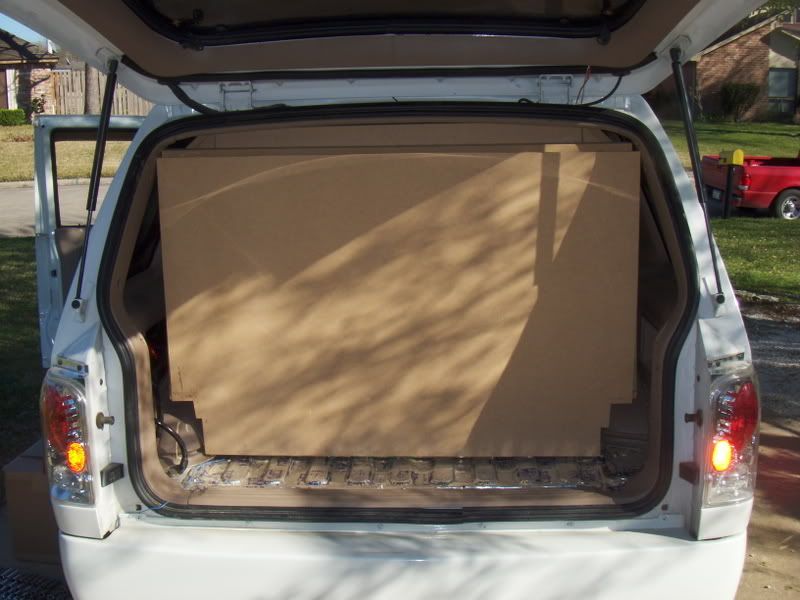 currently i have a tsunami 4gauge wiring kit with tsunami 4 gauge battery terminals going to a tsunami 2farad capacitor. mtx thunder elite 801d amp and mtx dual 7512 sledgehammer loaded enclosure. also have mtx components in the front doors and coaxials in the back running off a thunder elite 404 amp. pioneer premier 780mp head unit with tsunami rca's. i previously had the car gutted and sold the rear seats and rear carpet and everything. so when i put the system in, i need something to set the subs on. cut this board just to fit in there and keep the subs sitting on something; so dont hate because of it. i know it doesnt fit great, and thats getting changed.