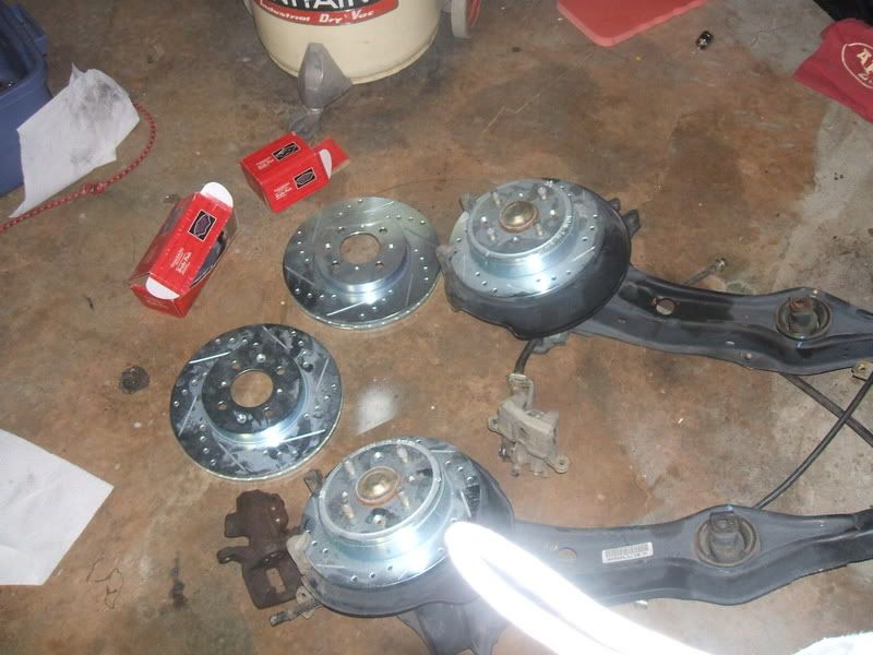 integra or civic Brembo drilled and slotted rotors and brake pads 350 with the 99-2000 Si rear control arms or 300 w/out control arms