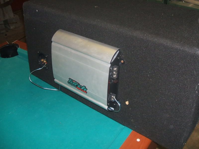 TORCH 12inch subs and amp. use about a week. Girlfriend got headaches. sound clean dont know the specs. friends can vouch 175