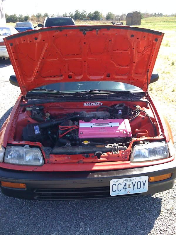 '95 b18c1 - skunk2 stage1 tuner cams, s2 cam gears, s2 valve springs/retainers, ITR pistons, full skunk2 exhaust, replica Hytech Header w/ custom test pipe, RC 440cc injectors, homemade ITB setup using suzuki 50mm trottle bodies an custom velocity stacks, an a OEM ITR LSD tranny! (A/C an power steering removed) fluidyne radiator, hasport motor mounts, traction bars ... tuned on hondata s300 vtec set 3800rpm an 8800rpm redline made 188 whp/ 133 tq on 93 pump gas an daily driven