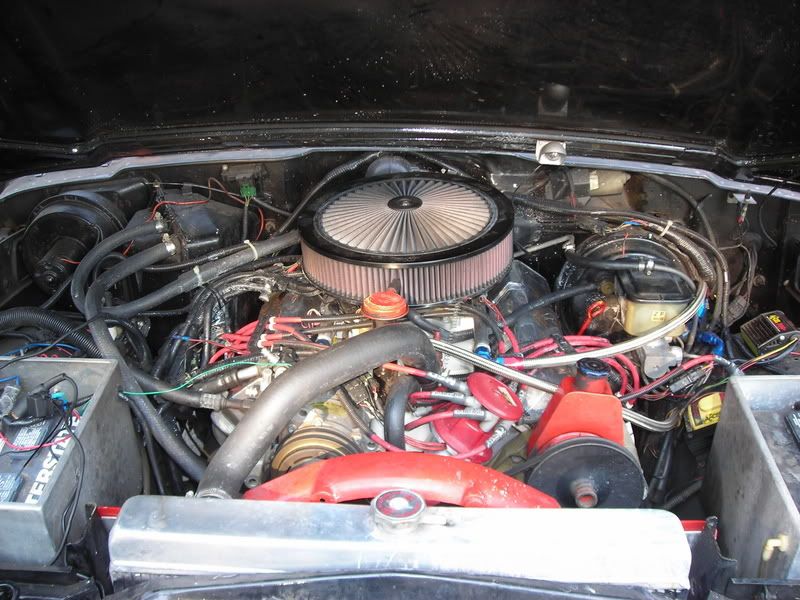 Cleaned it up a little last night/today. Took off the header & gave it a quick polish, cleaned up the block/tranny & painted it high-heat silver, and re-painted engine bay flat black![]()