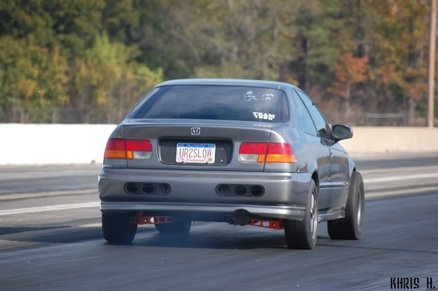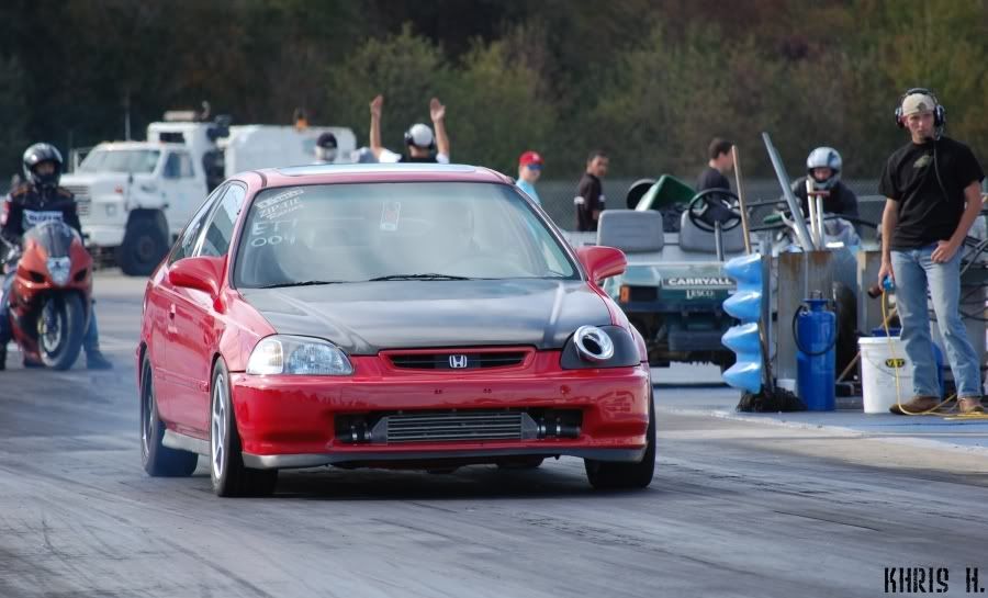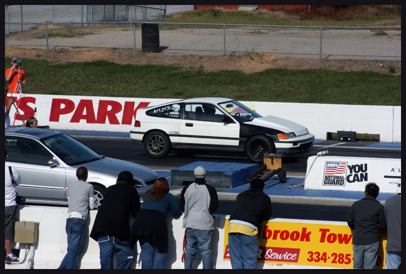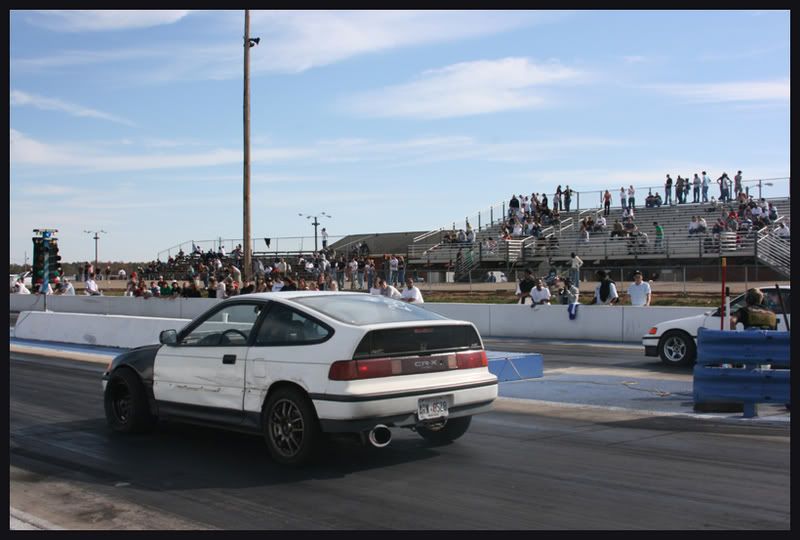 ...hey bud, got any of the K20CRX white crx with black front fenders... 24 inch slicks... cowl hood... umm made 2 passes in all motor class... and i broke 2nd gear on the first elimination round....