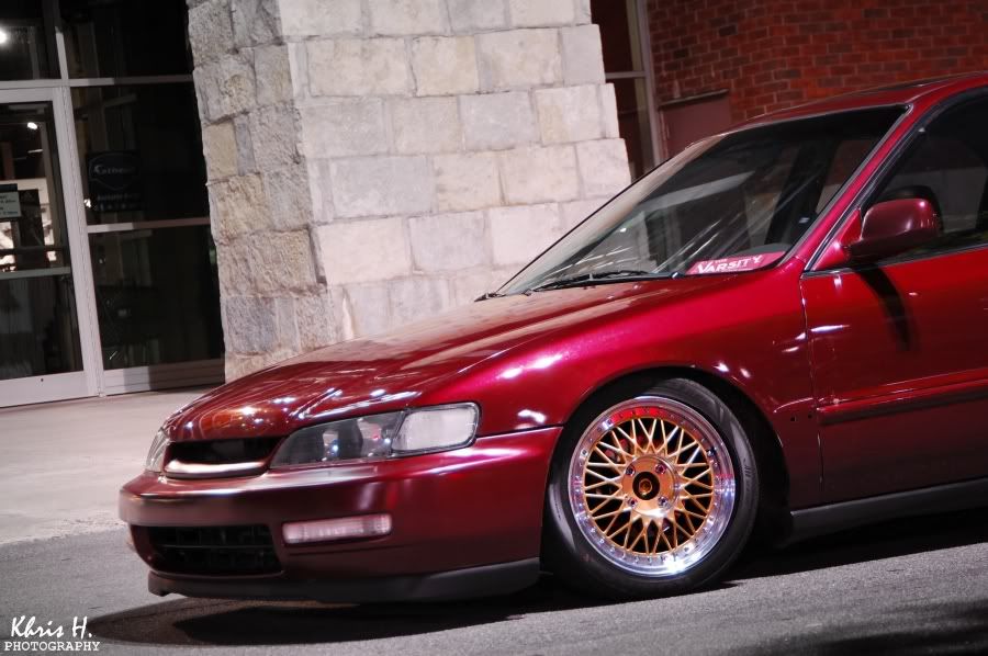 The color combo reminds me of the Maroon offered on Porsche 928s with gold BBS wheels. Can you go down another .5" in the back? Stance is really nice but a tad raked.
