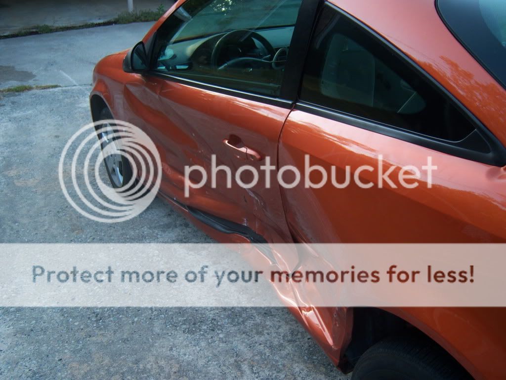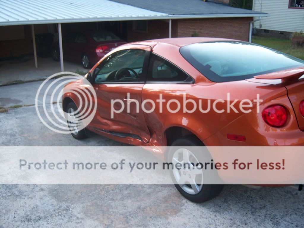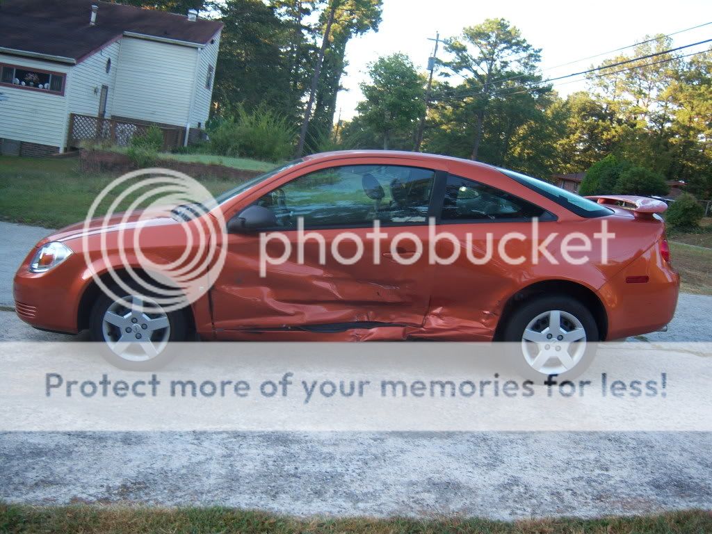 Well i got in a wreck Today at around 7 A.M.(T-BONED) The other driver was at fault for running a red light. The vehicles that where in the wreck, ME:2007 Chevy Cobalt (base model) Them:1997 Toyota Camry. The other guy was very sorry and all i have all his information: Home Number, Insurance policy number, ETC. BTW he has State Farm and i have Progressive. My mom was with me and she is having back problems so we took her to the hospital, I was to worried for her so i didnt get my self check. But later that day err today i felt Pains in my neck and a massive headache till i took 1000mg of ibuprofen, The pain is coming back so im going to the doctor tomorrow morning. This is my first accdent and i really dont know what to do. As stated before it was his fault... But i need advice on what to do. i have pics of the after-math of the cobalt...Sorry if the pics are too big and what not but i dont know how to resize them and plus i think you can pick everything out better (Now i belived it will be totaled, Right i mean come on look at the rear q. panel of the car)