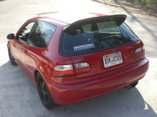 Well Before I had a red grill, red painted foglights, an ok lookin silver muffler(stock quiet but drains power to me) i had a 3inch wheel gap..lol, i had no duckbill and the eg felt bald to me, i didnt have a lip (wings west lip)