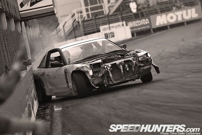he initiates his drifts by slambing the car into the wall.![]()