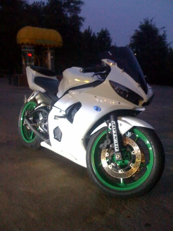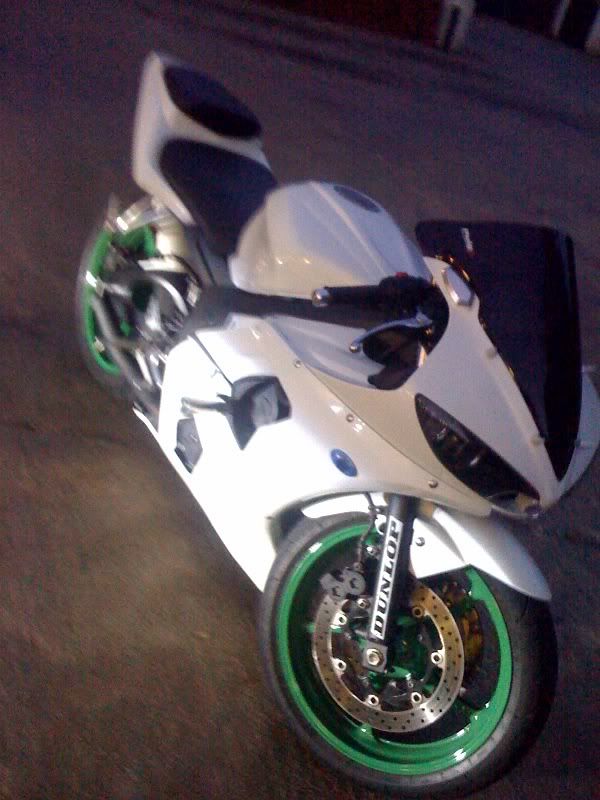 So I was bored with the same o blue bike... So I got busy.. Bright whit with green pearl