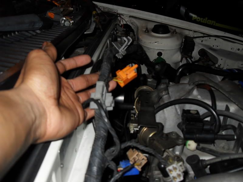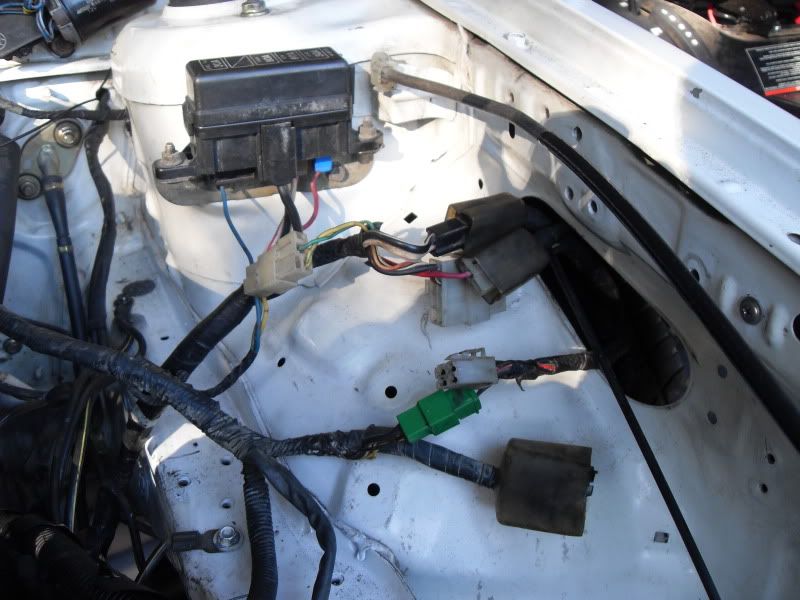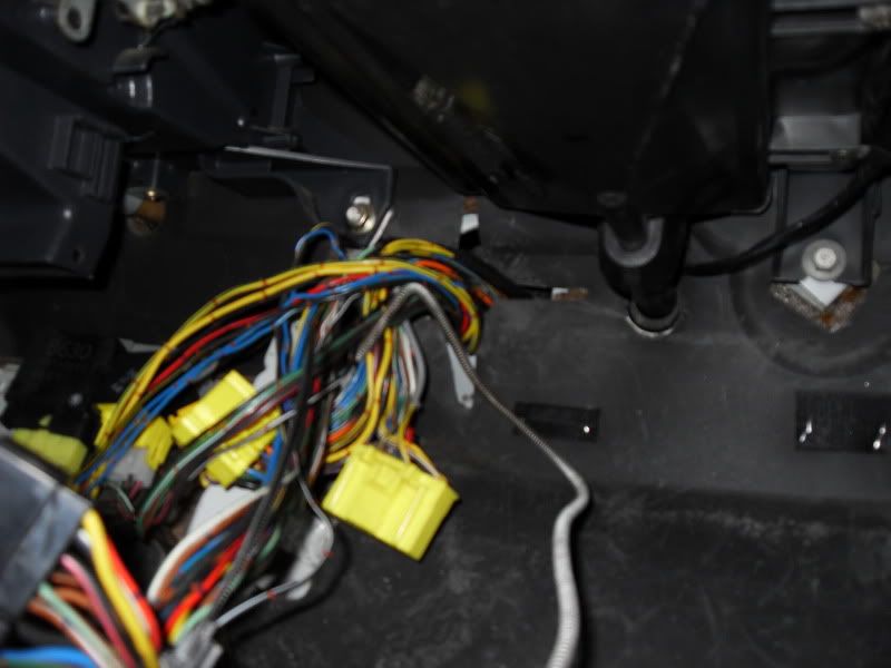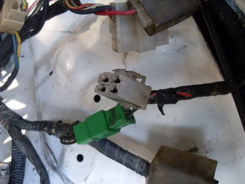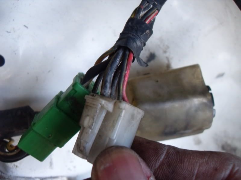 here's a little taste of the wiring nightmare. im starting to get the hang of it...kinda. i havent really cut deep into the harness yet. where my hand is the part of the harness that i need to dig through. same goes for the other picture with the green and yellow plugs on it. i wont be needing most of that anymore.