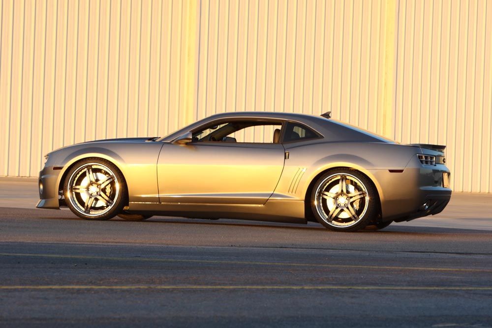 That Camaro looks really good. The stance is good, but the rims style is just okay. It's funny how everyone wants the dude to get thinner tire. The rims and tires fills up the wheel well just fine to me, but to each their own.