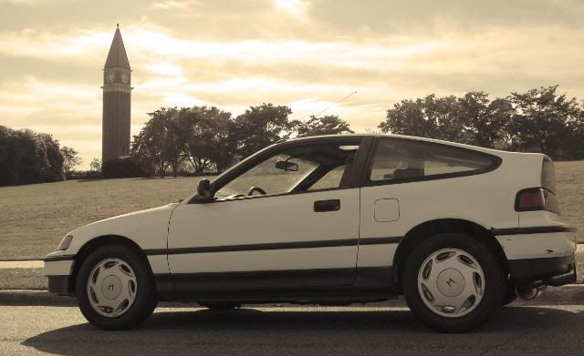 Right now? Not a whole lot. Basically I'm just going to take my time getting to know the car. I need to double check everything the PO did for my own peace of mind (still sifting through a shoebox full of receipts). I want to figure out what was stock and what's not. It looks good and runs well. I need to clean up some cosmetic flaws -- a few dents, the rip on the front seat and bolster, the cargo divider is in two pieces, touch up some paint, wash it, etc. Those are the important first steps. So no mods in the immediate future. Just cleaning and getting to know the CRX.