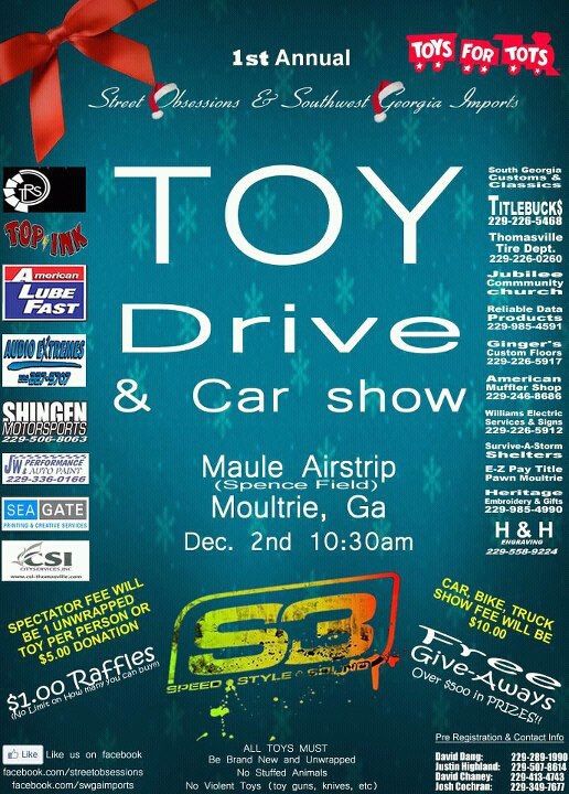 Hey guys, my brother and his friends in south georgia are throwing a toys for tots toy drive/ car show on sunday december 2nd!