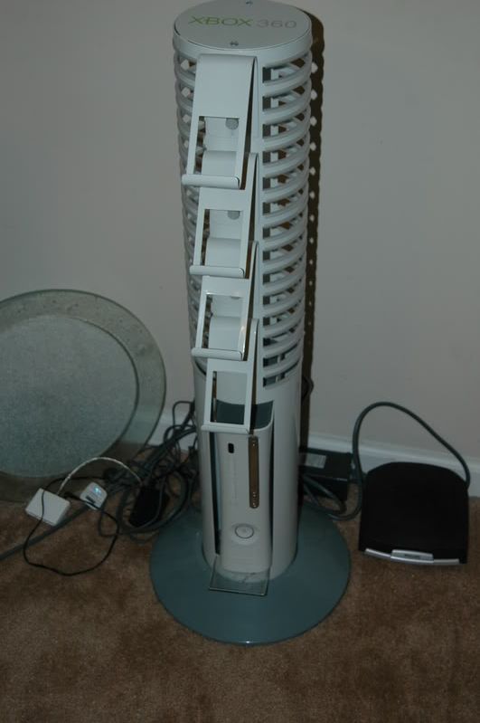 very nice xbox stand that holds 4 controllers and a lot of games (again this was another 75 bucks) allows you to place the console upright without fear of it falling over..