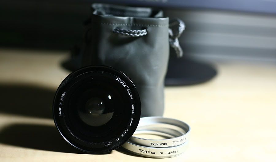 A nice fisheye adapter made for either 52mm (nikon kit lens) or 58mm (canon kit lens) threads.