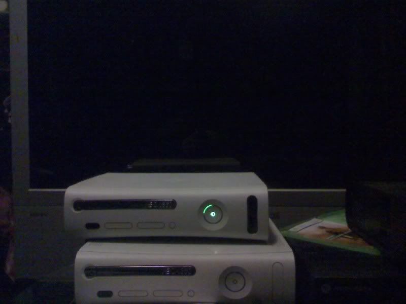 Elite xbox is to the right(black, hardly in pic). but has RING OF DEATH DUN DUN DUNNN