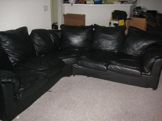 $250 two piece round couch black leather.