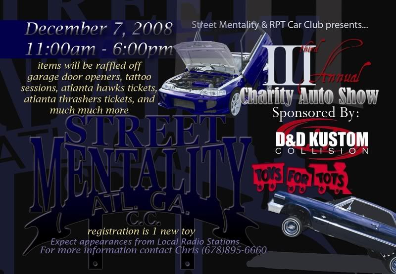 their will be face painting for the kids. and raffle tix are not for sale. they will be given away to each person that gives a toy. plus their will be some tattoo sessions raffled off from all or nothing that is located on s.cobb dr