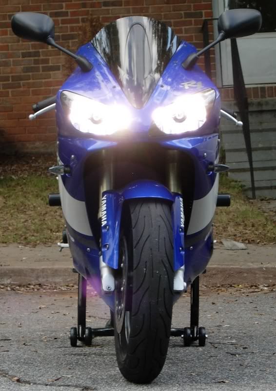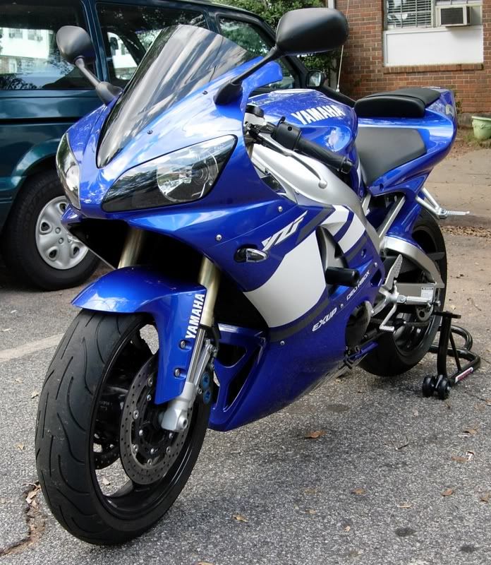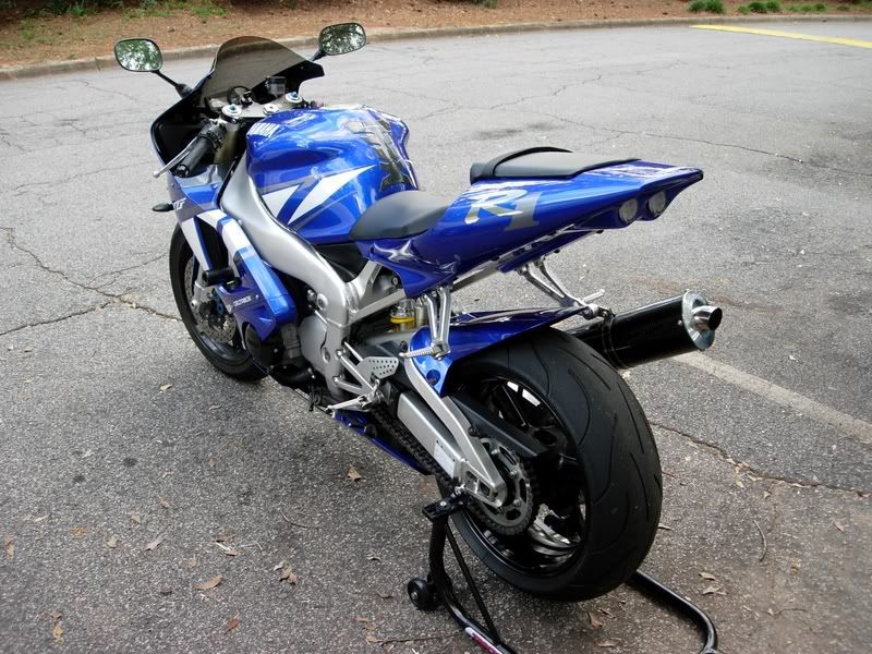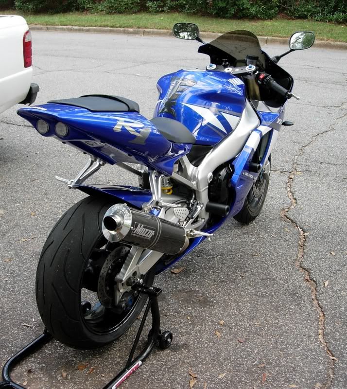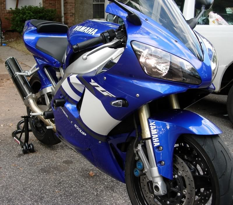 Ok, I Just picked up another toy, a 2001 R1 Blue. It's all stock, but I already installed a new Zero Gravity smoke DB windscreen, Targa Solo Seat cover, Sliders, Hotbodies Undertail, Short stalk Signals, 4800K hiper white bulbs ( up garding to real H.I.D. in a week or so) Tank protector, Muzzy Carbon Fiber slip on exhust. I plan to do more to it as time and money allows me to do so, but for now I am happy the way it is.