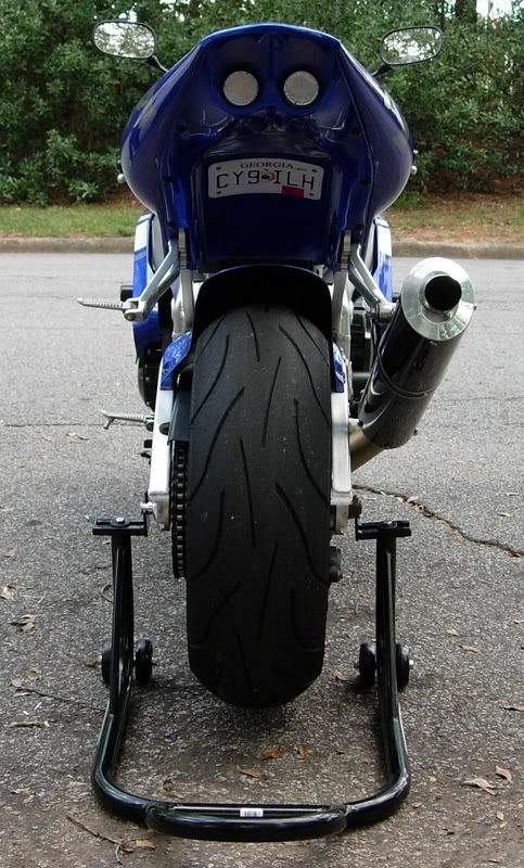 couple pics of mine.... 2001 Gsxr 600.. yoshi pipe (just cut 4" off it so its alot shorter now) hotbodies undertail, k&n filter, power commander, vortex sprockets added 5 teeth in the rear dropped 2 up front