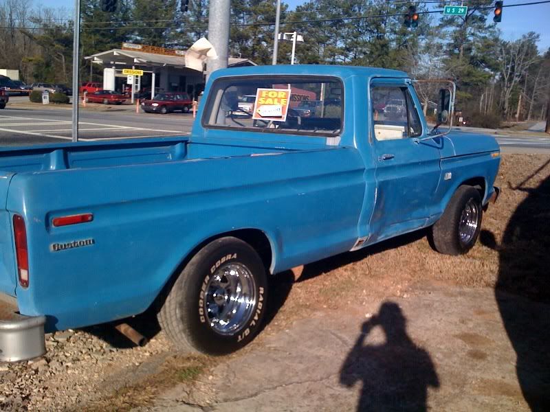 1974 f100 blue with damaged passenger door but it will include another door in better shape/. Body is in great shape except the passenger cab corner and door.. Also needs a paint job. Front wheels are 15x8 Cragar nomad 2s rear are 15x10 Cragar nomad 2s in chrome wheels are brand new. Truck has a running 302 with a three speed manual on the column. Interior is white and blue but head liner is red because i was planning on doing white on red, i also have red door panels if price is near met. Only getting rid of it because I desperatly want a fox body mustang. I drive this truck 2 or three times a week to work I'm lilburn. . Call me at 678 862 9253 or email me at [email protected] my name is mason