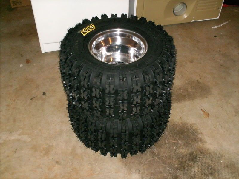 ITP Holeshot HD ATV tires mounted on polished wheels. Size: 20x11-9(rear tires). These are BRAND NEW, never been used. Have invoice showing were I just paid $266.90 w/ shipping. Need to sell asap. I know some of you guys ride ATV's, these things will grip like you wouldn't believe. Open to trades, just let me know what you have.