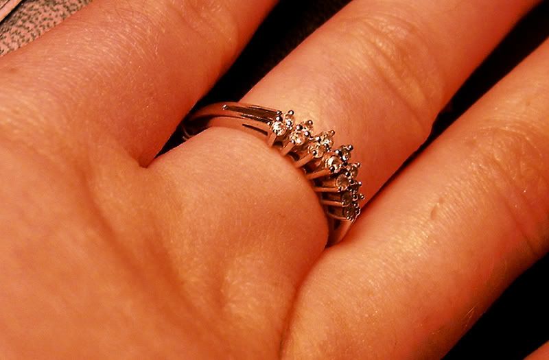 It has 14 little diamonds. Its part of an engagement set, but it would be great for a birthday/anniversary/whatever gift or as a promise ring type thing.