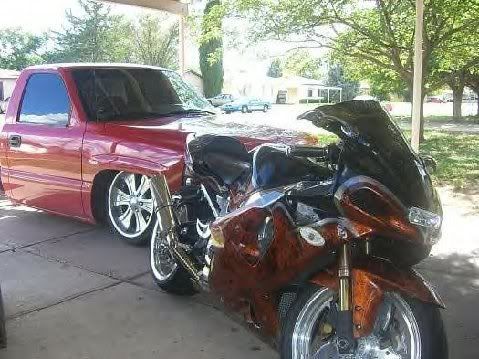 u people kill me! i was thinking about haveing it painted kandy red/blk and marbleized the red would be really dark. with a small amount of orange.