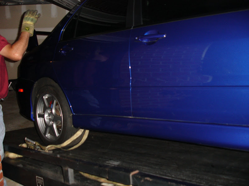 The flatbed driver was a champ.....figured out how to get the car in to the garage (My driveway is on an decline and I had no clue how long it was going to take to get it running and didn't want it sitting on the driveway until I did)