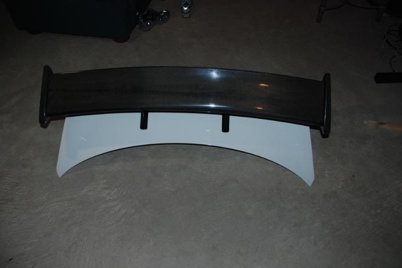 Veilside carbon fiber wing on stock white trunk with remote opening