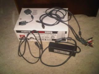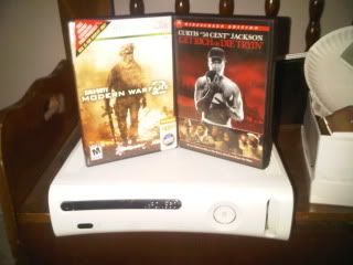 comes with hdmi cables, system link as well, hard drive, one controller, modern warfare 2, and one beautiful movie, get rich or die trying.