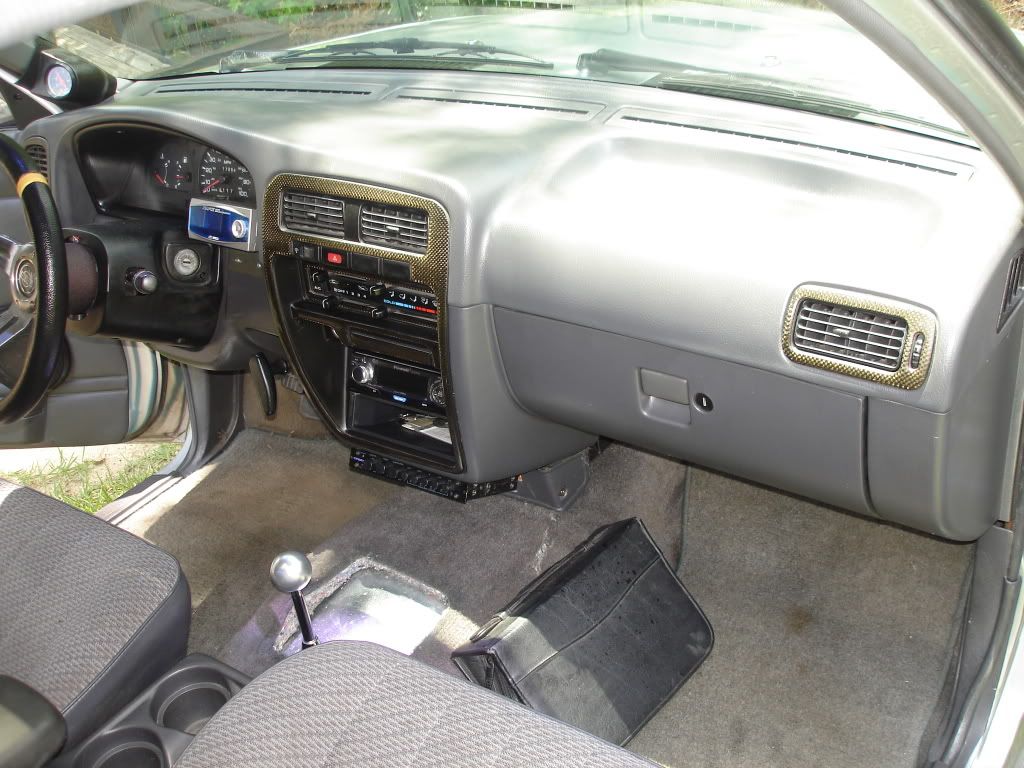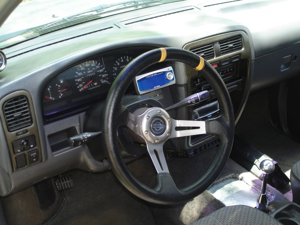 New parts that has already been installed, both upper and lower ball joints, both inner and outter tire rod ends, center link, and idler arm. Just had the front end aligniment done, new tires, energy saving bushing all in the front end. New shocks all the way around, new brakes all the way around. CXRacing radiator with dual electirc fans, Apexi SAFC 2, Walbro 255lph fuel pump, new paint job about 6 months old, LED tail lights, new tailgate that doesn't have nissan raised up and the tailgate handle has been shaved and relocated to the inside, shaved antenna, 92-95 Toyota 4x4 pickup front bumper and valence. New headlights corner lights, front bumper lights and grille. New timing belt, water pump, front main seal and cam seals. New nissan powered mirrors. 2 1/2 aluminum intercooler piping with a 26x8x3 Intercooler. Short shifter. New battery( bought 8-21-09)
