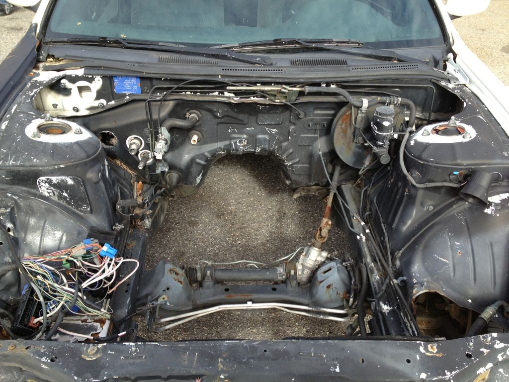 missing a hood front bumper and a passanger side fender.