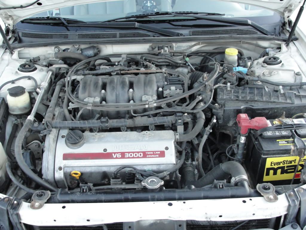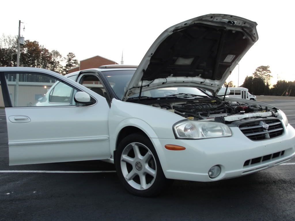 Ok so I've decided that my 2001 Maxima SE will be my first project car. It seems like a good choice, given the DE-K under the hood and that it isn't beat all to hell. It has an automatic transmission but don't forget, the fastest recorded Maxima was with an automatic tranny! Since its my first project, I don't have a layout of how the project will go but here are some pictures.