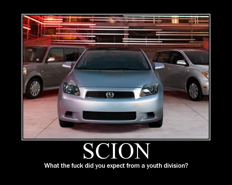 jk kidding scion people lol but seriously, its a lunch box, a confused honda fit and a camry with a body kit..... lol