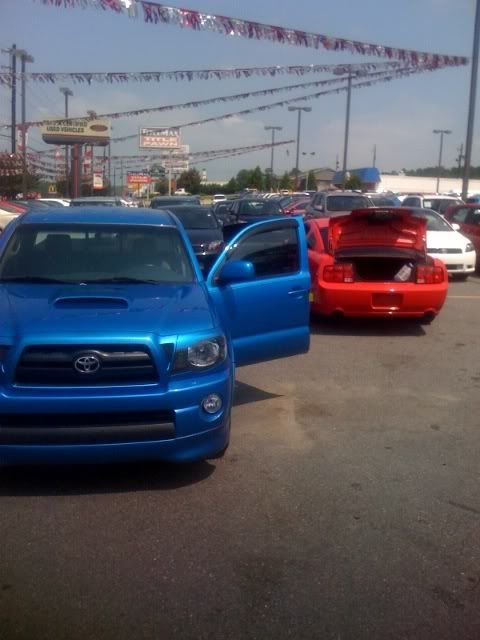 I no longer have the infamous broke ass mustang. It's gone and I have a new vehicle. Drove all the way to Milledgeville this morning to do some trading. Here are the pics of the 2 vehicles together: Gonna get chang to get some pics of her soon.