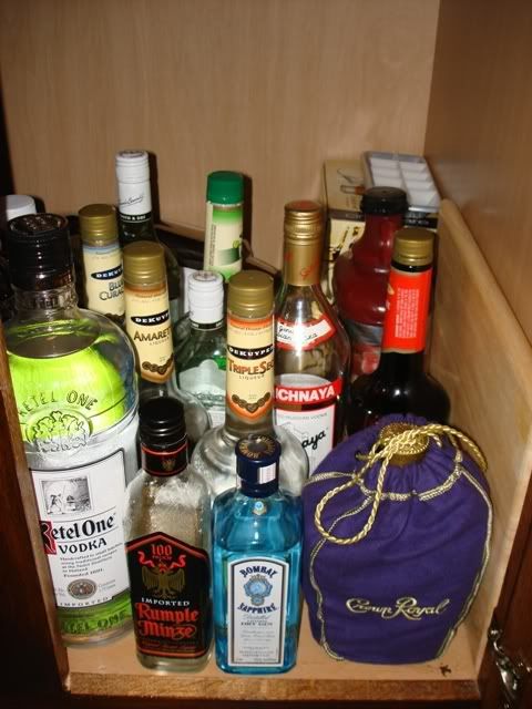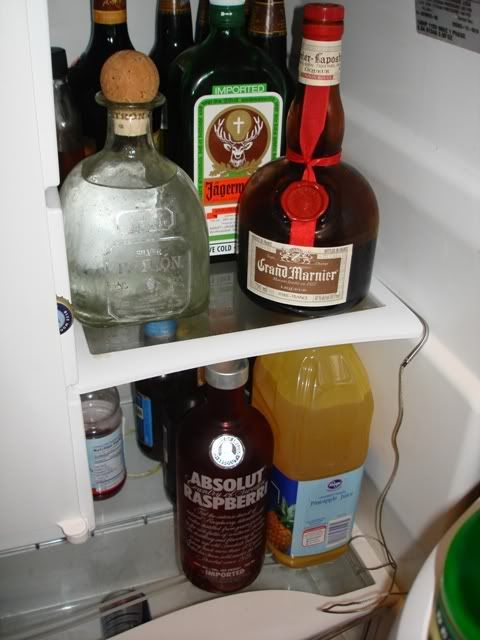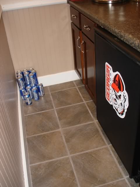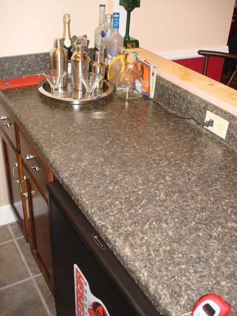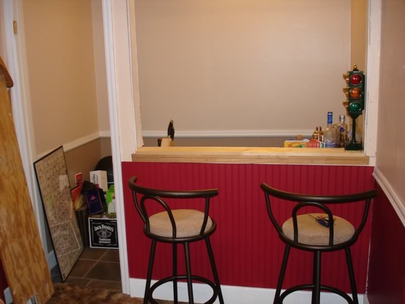 As I stated in my last thread in the lifestyle section, I have recently built a new bar. A few people asked to see pics, so here they are. This used to be a small closet, but I decided to build a bar out of it. I did all the work myself, including cutting the wall out, putting in new drywall, laying tile, building and staining the cabinets, putting in the counter tops, rewiring the room, painting, and a few other things. The house is about 100 years old, so you can imagine all the **** i ran into and had to rebuild. The whole project (not counting the fridge - see pic and description of fridge below) cost me about $800. I am still waiting on the front bar top, which sits on the front of the bar in the window. Other than that, the project is pretty much done. In the future I plan to put a small sink in as well. I think it turned out pretty good. What do you guys think?