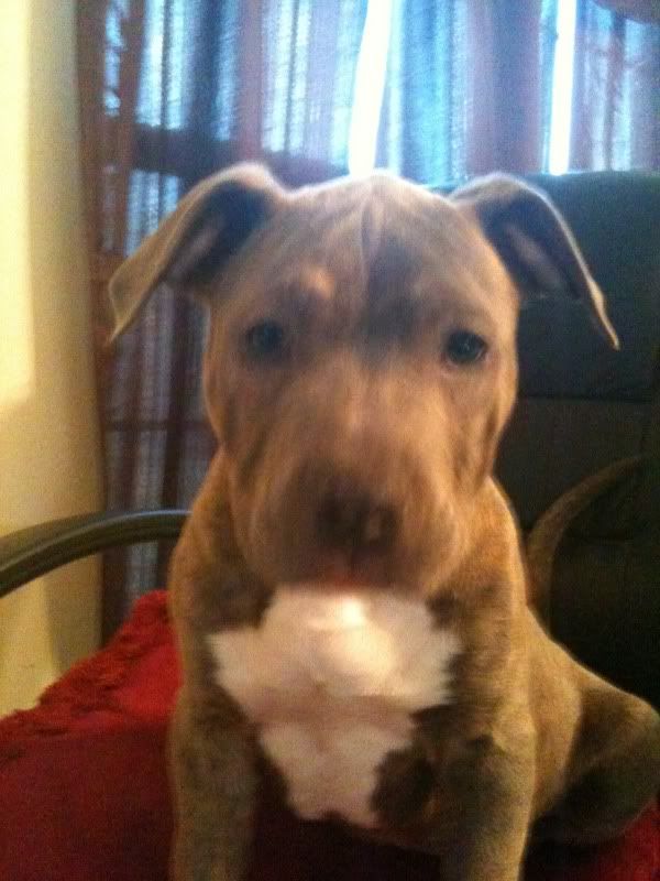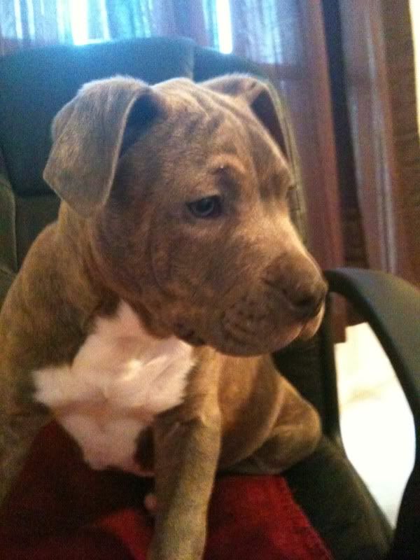 So my previous Pitbull ran away, so I got a new one. Her name is Belle. Sorry the pics are so blurry, iPhone + active puppy.