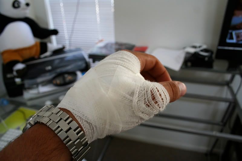 Dude, glad you still have all your fingers. Hope it heals up quickly!