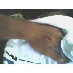I was pretty wierded out, i have never cut my hand that bad ever. it was 1" deep...