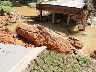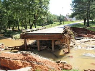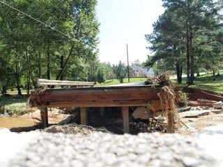 I'm pretty sure they had flood insurance. I learned later that due to the creek and lake back there it was declared a flood plain and the people behind me are also on that plain and they had to purchase flood insurance when they bought the home because of it. I know my house is not on it. All the water broke through and is now GONE! That's how fast the stuff moves with nothing to hold it back. Here are some pictures I took this morning.