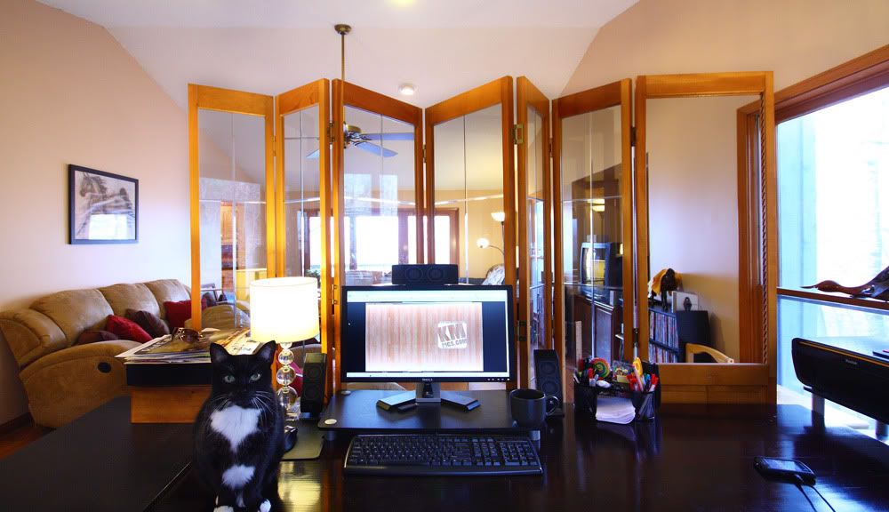 Lol @ the cat. And I like that divider--we could use one of those in our den.