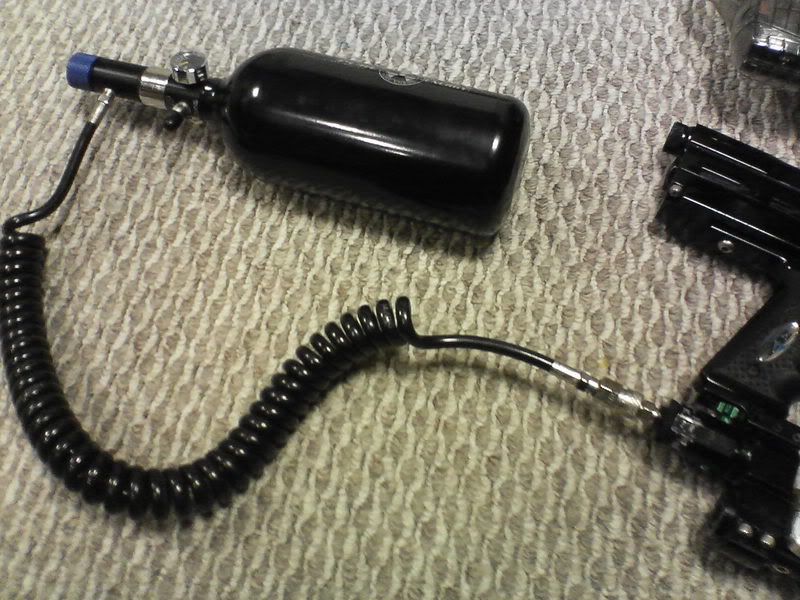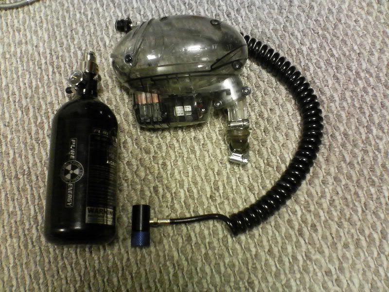 Comes with the charger, hoper, elbow, mask, and 20 oz CO2 tank