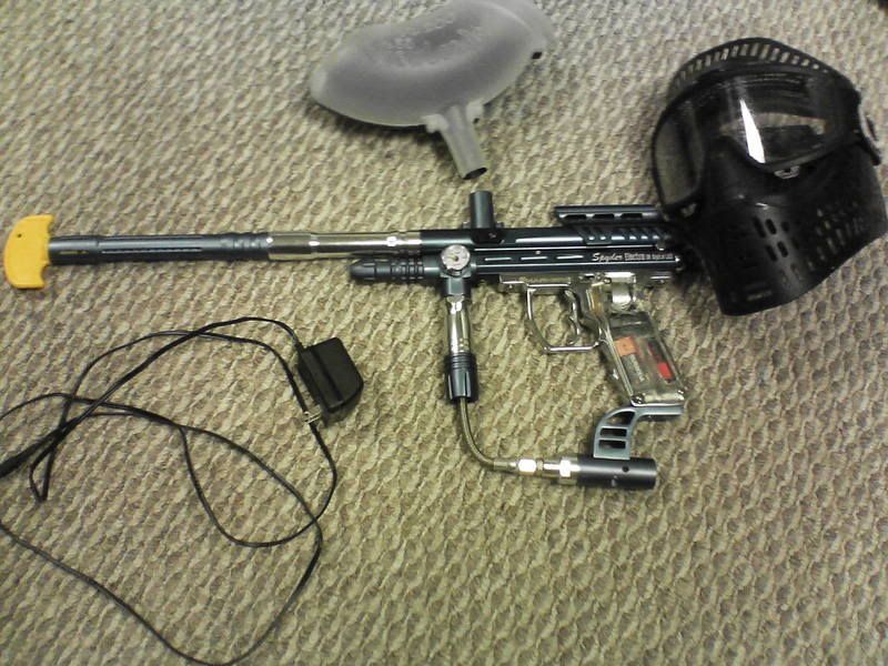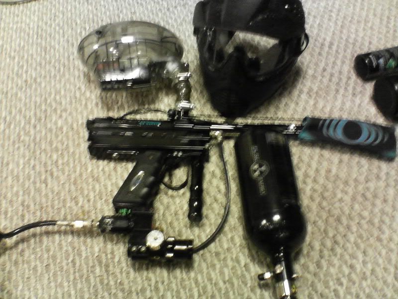 It comes with eVLution II hopper, 3000psi Pure Energy tank, Pure Energy remote(cord that lets you take the take away from the gun) and mask.