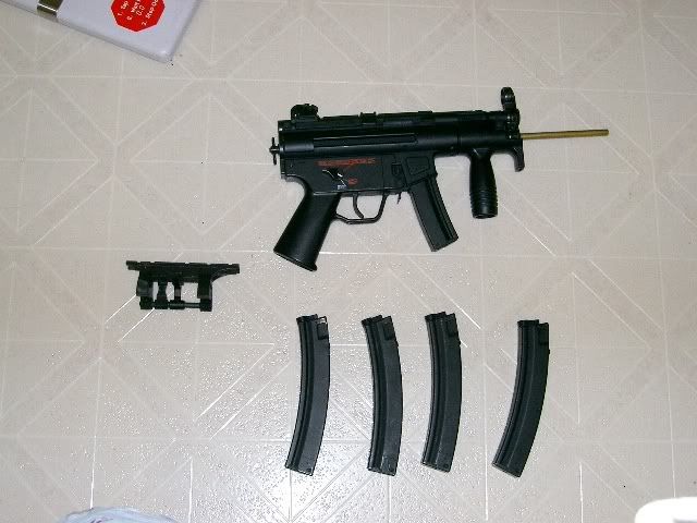 Hey guys I'm selling my Tokyo Marui MP5K back up/ side arm. Used very little since it's my secondary weapon. But there are few scratches on the body but nothing major. The gun is mostly stock other than a upgrade Systema 6.4mm tight bore barrel. The barrel is 229mm long which is the barrel for a standard MP5. So the gun shoot as well as a standard TM MP5 but a whole lot more compact. This is the smallest "full size" AEG and shoots 285 fps like a normal size MP5. Like all Tokyo Marui guns.. if you keep the gun stock this gun will last for a very very long time. The gun comes with 1 battery, 1 short mag, 4 CA metal mid cap 50 rounds mag, TM high RIS mount, and the short stock barrel. DOES NOT COME WITH BATTERY CHARGER!!! Recommend getting the Intelligent Charger from Airsoft Atlanta.