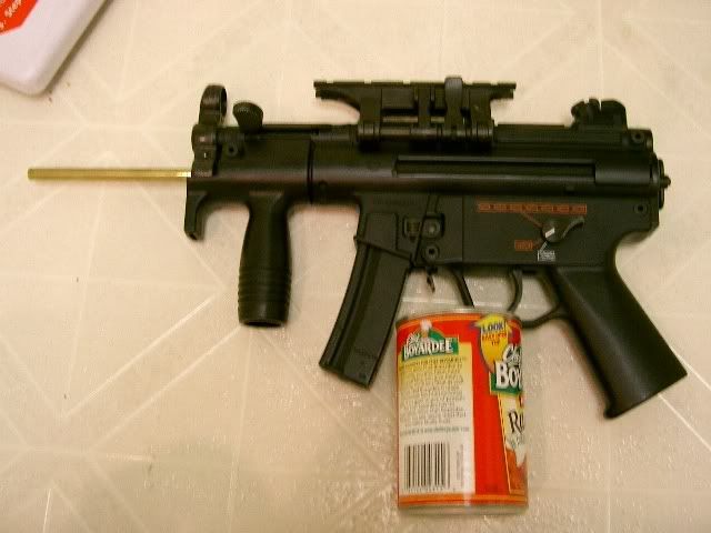 As you can see the the barrel is sticking out... I was going to get a silencer for the gun but I'm selling it now... the gun would look something like this with a silencer.